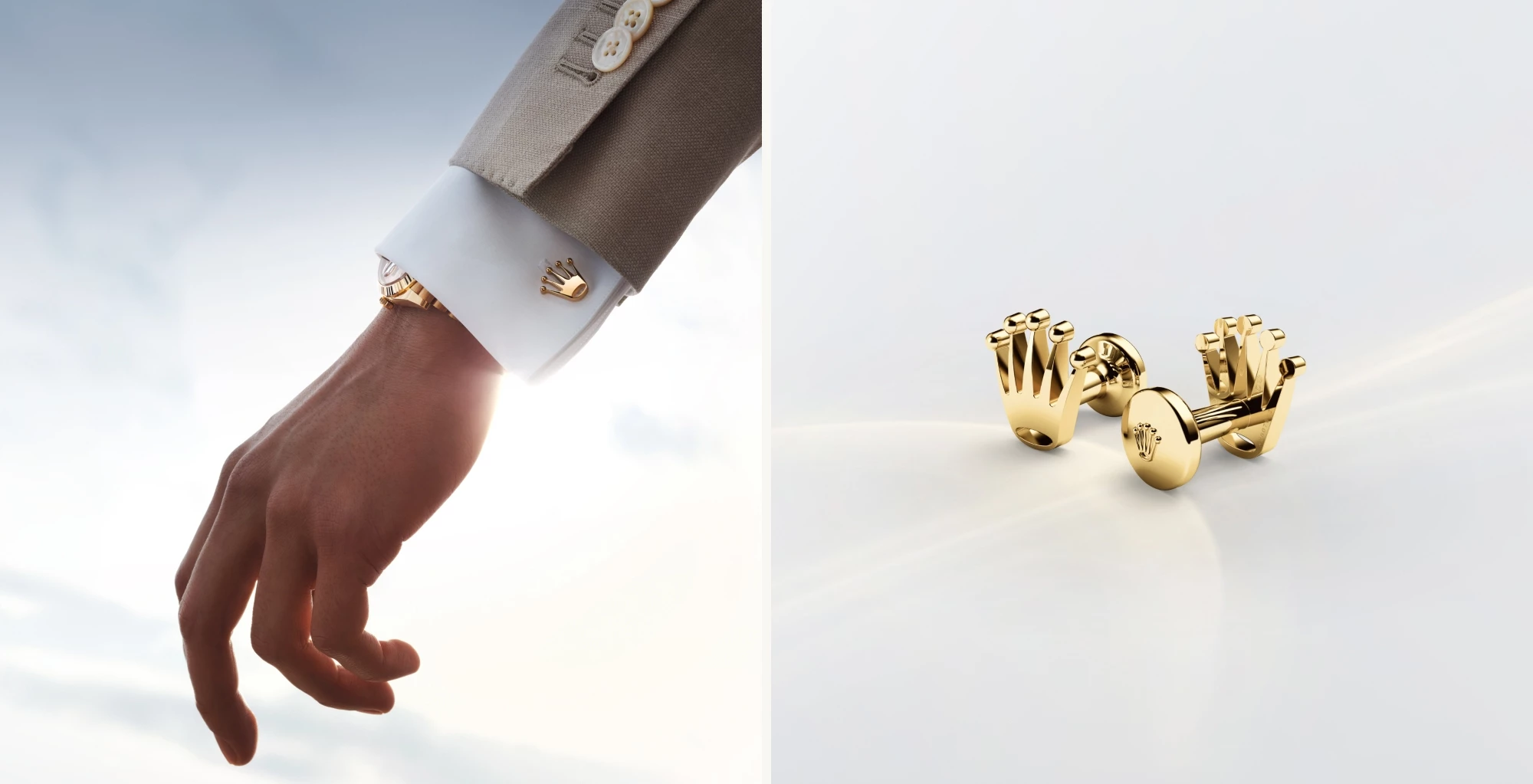 La couronne à cinq branches, emblème de la marque, se décline en boutons de manchette. Ils ajoutent une touche de distinction au poignet de ceux qui souhaitent porter lʼexcellence jusque dans le moindre détail.