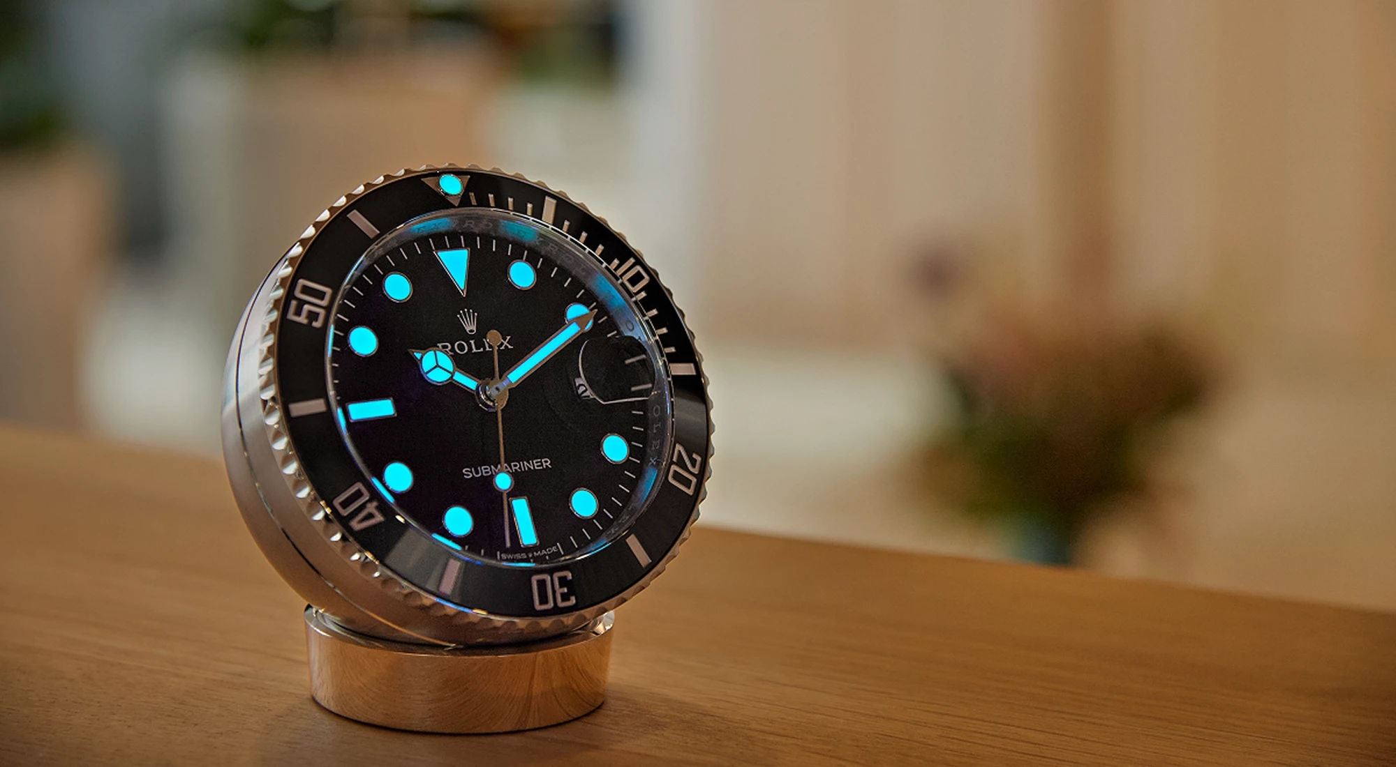 Directement inspirées de modèles iconiques de la marque, les pendulettes de table transposent l’esthétique des montres Rolex et le savoir‑faire de la manufacture dans un format pensé pour l’espace intérieur.